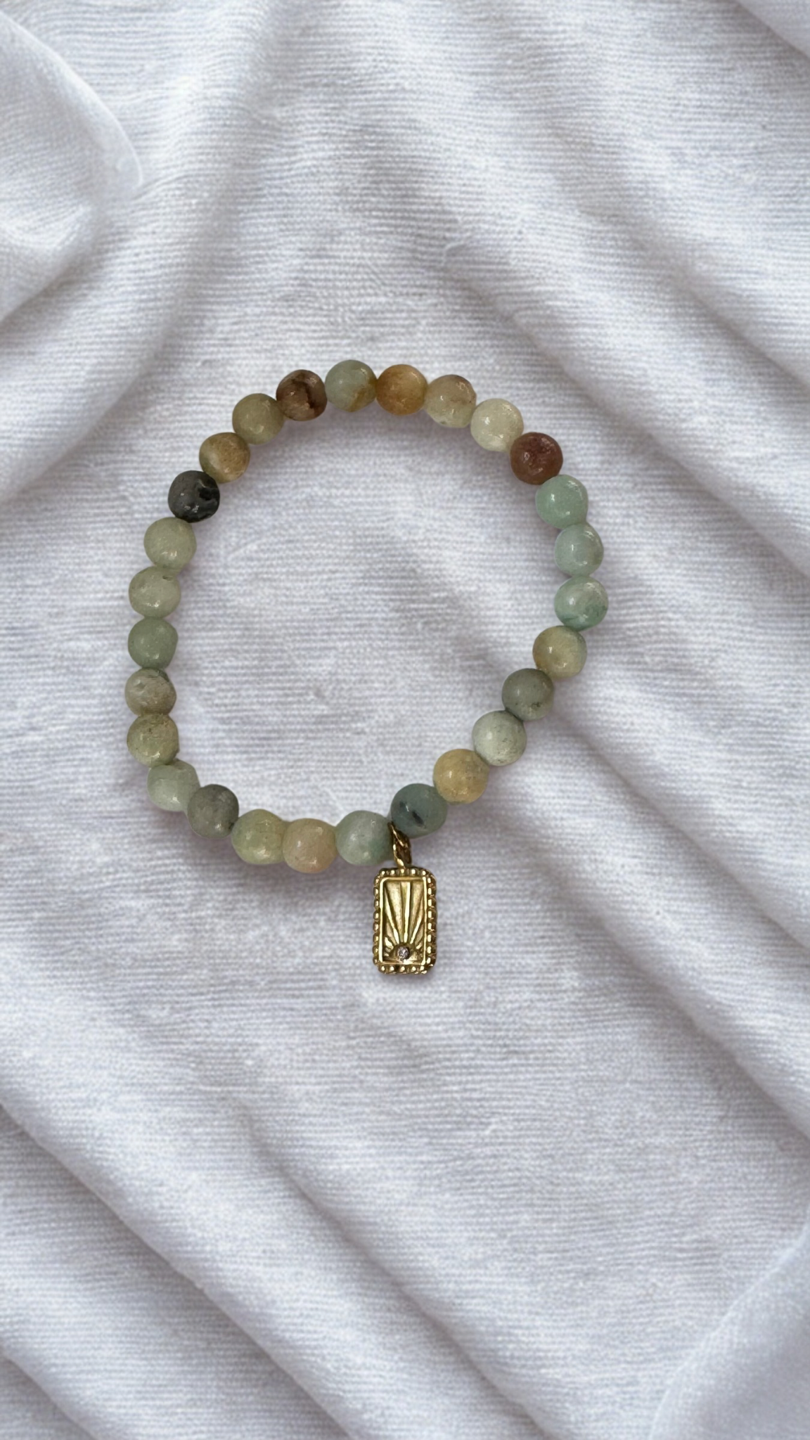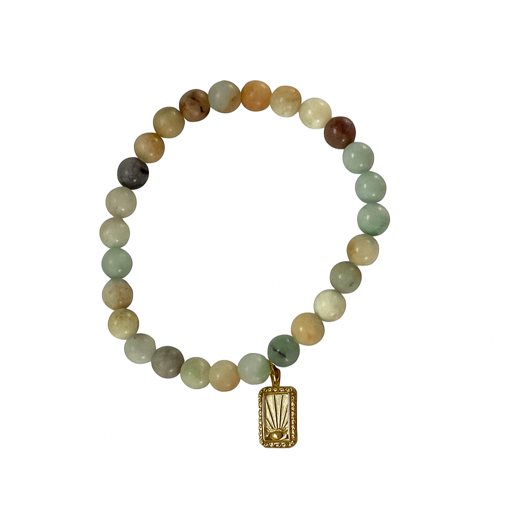 Step into light and clarity with our Amazonite Sun Ray Intention Bracelet. Hand-strung with genuine Amazonite beads, this bracelet radiates soothing hues of soft greens, blues, and earthy tones—known to calm the mind and bring balance to the spirit.