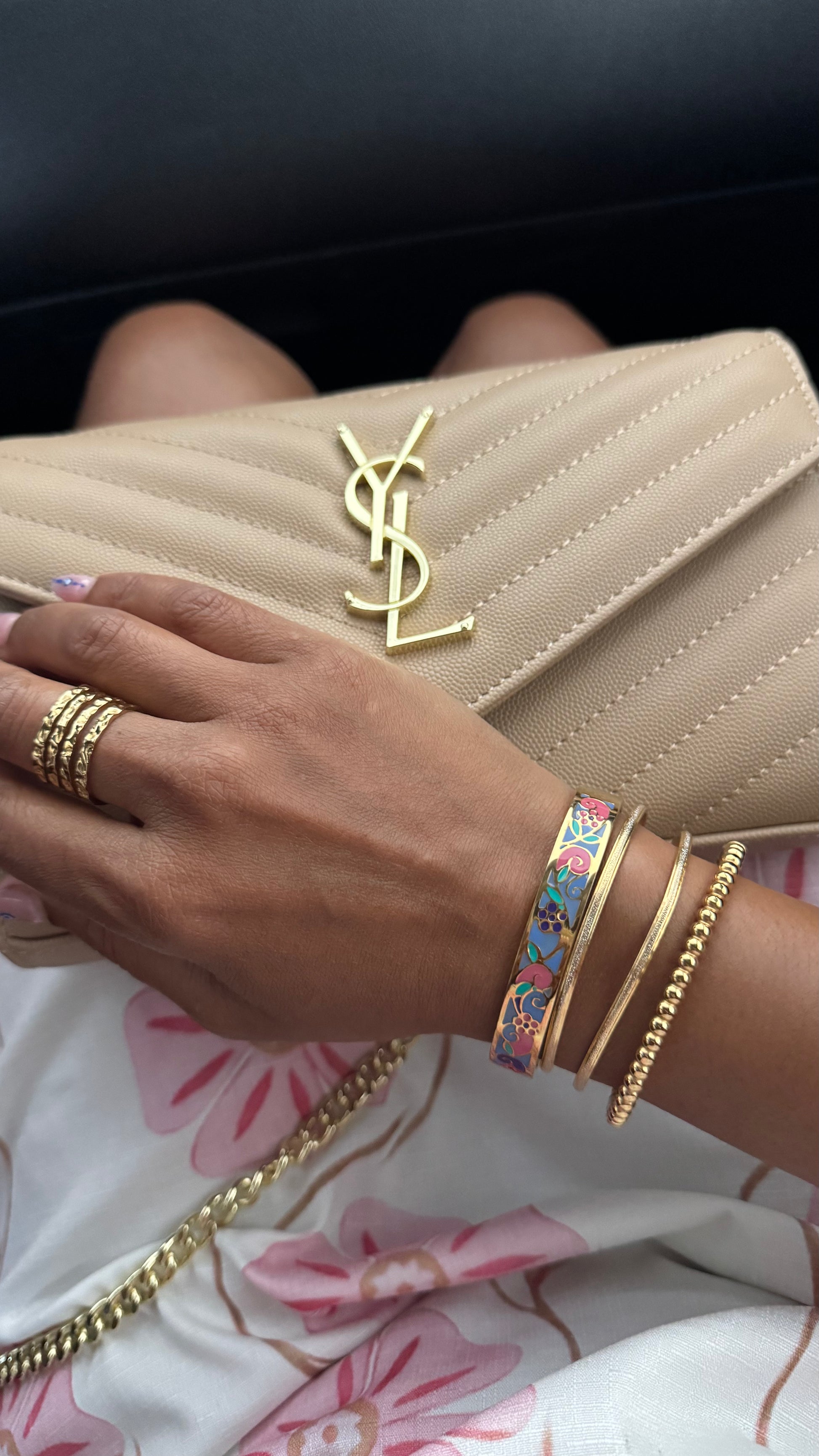 This artsy bangle is a beautiful and unique piece, made from high quality stainless steel and adorned with a colorful flower design. Perfect for adding a touch of artistry and elegance to any outfit. Crafted with precision and expertly designed, this bangle is a must-have for any fashion-forward individual.