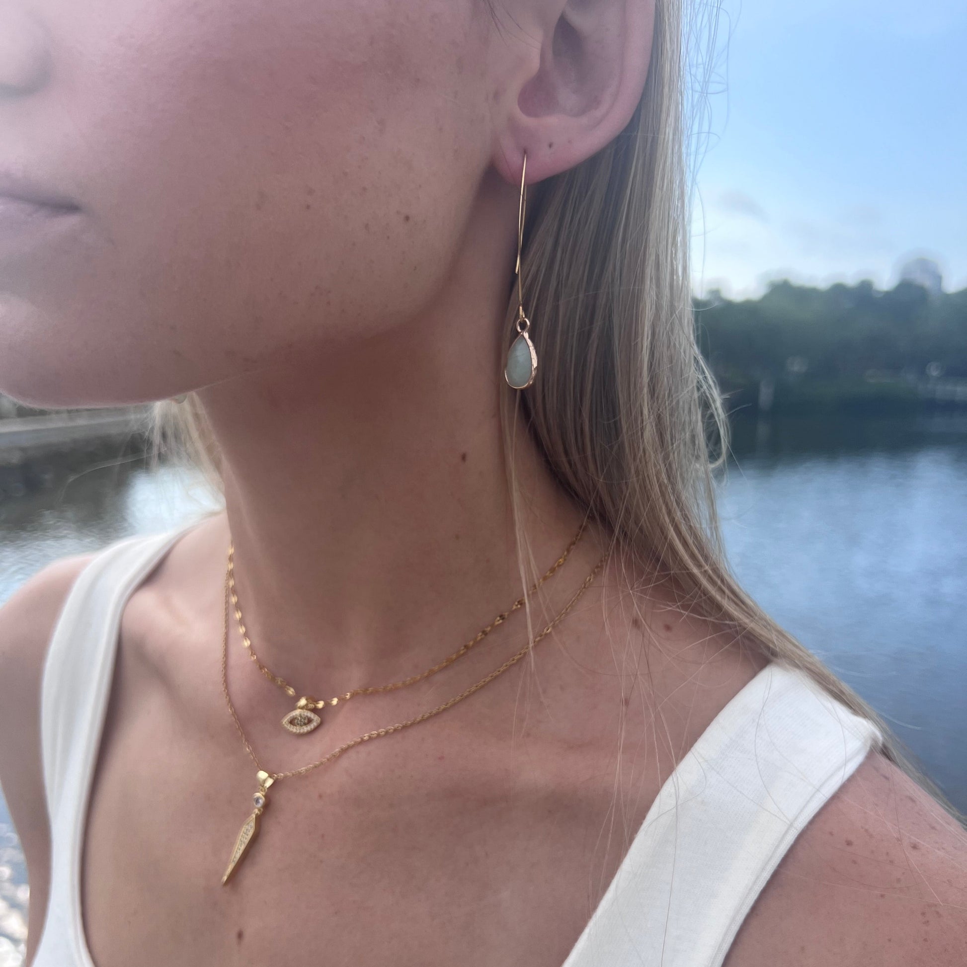 Experience the beauty and power of the Blue Agate Stone Dangles! These stunning earrings feature blue agate stones that are believed to promote calmness and emotional healing. Elevate your style and inner peace with this unique accessory.