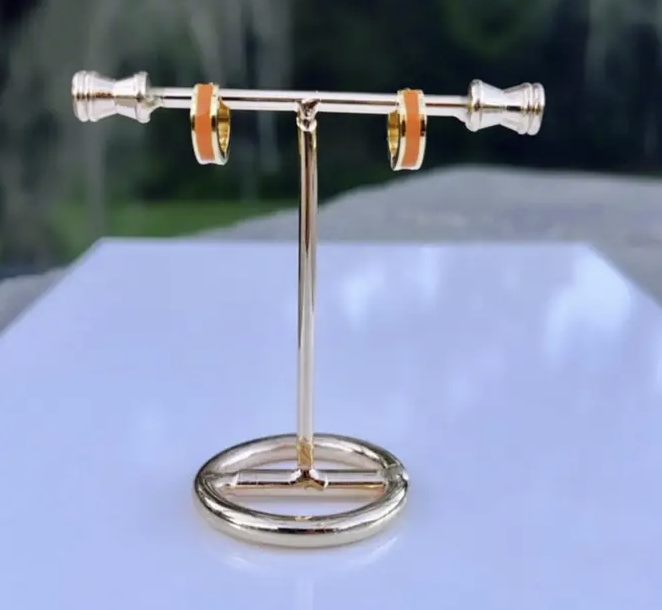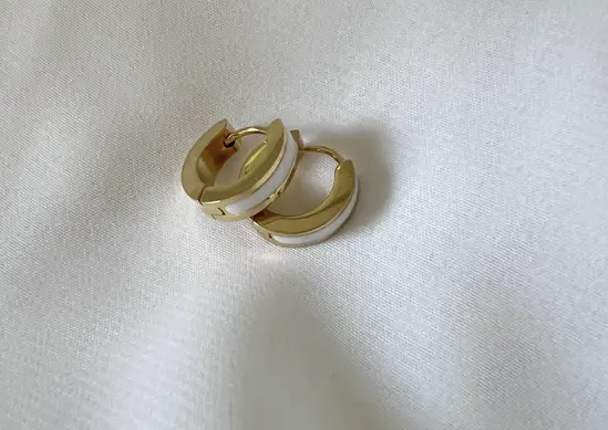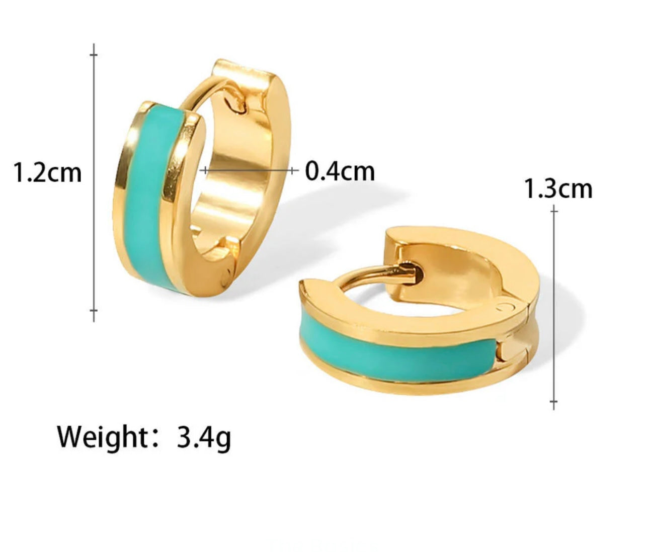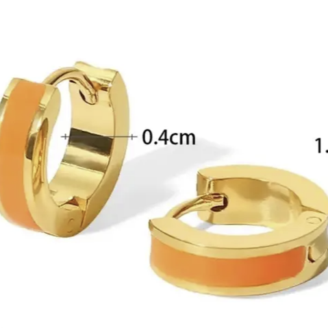 Add a pop of color to your outfit with our Colorful Enamel Huggies. Available in white, orange, or blue, these huggies will hug your ears with style and playfulness.