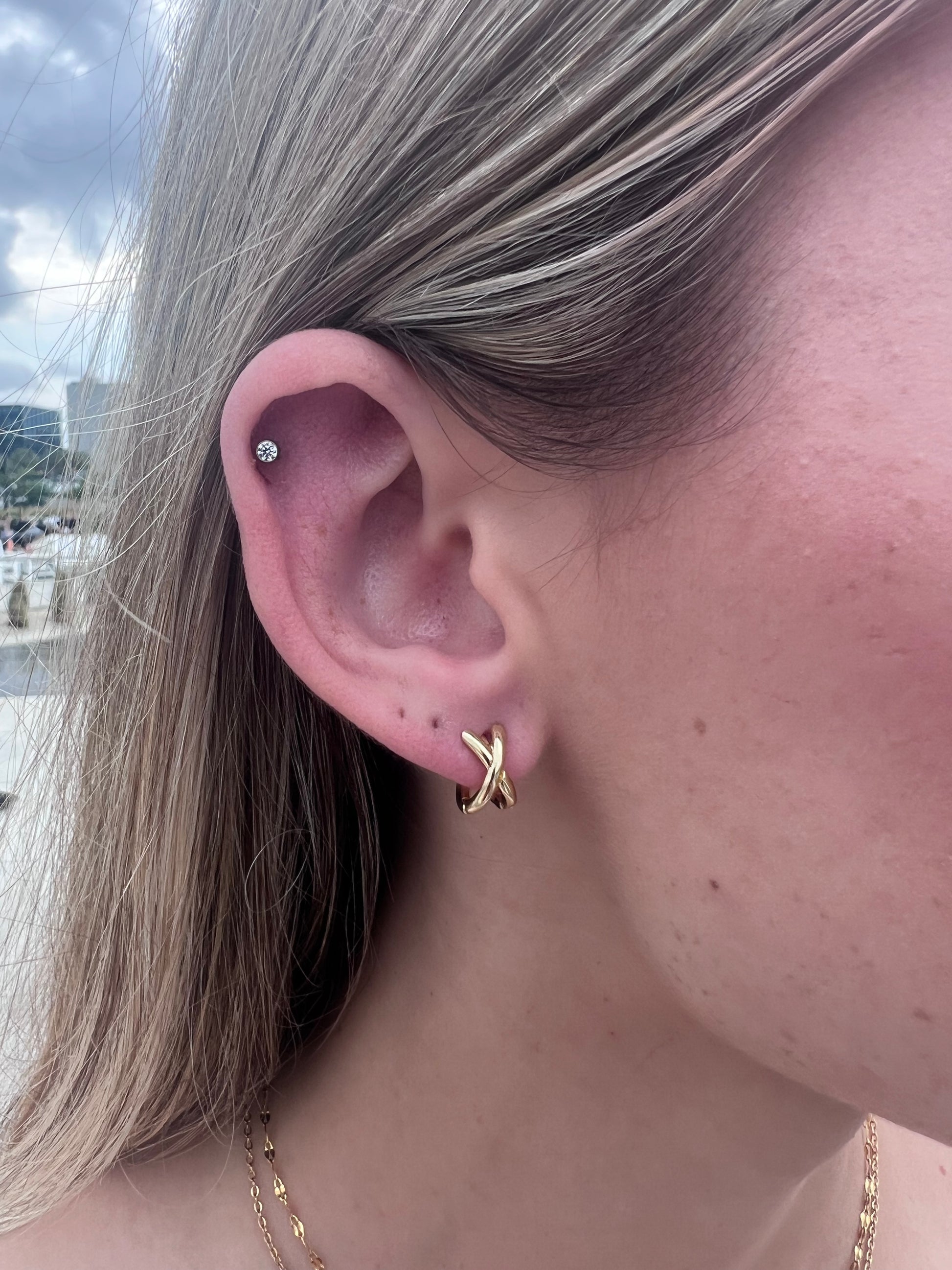 Get tangled up in style with these Criss Cross Huggie Earrings!