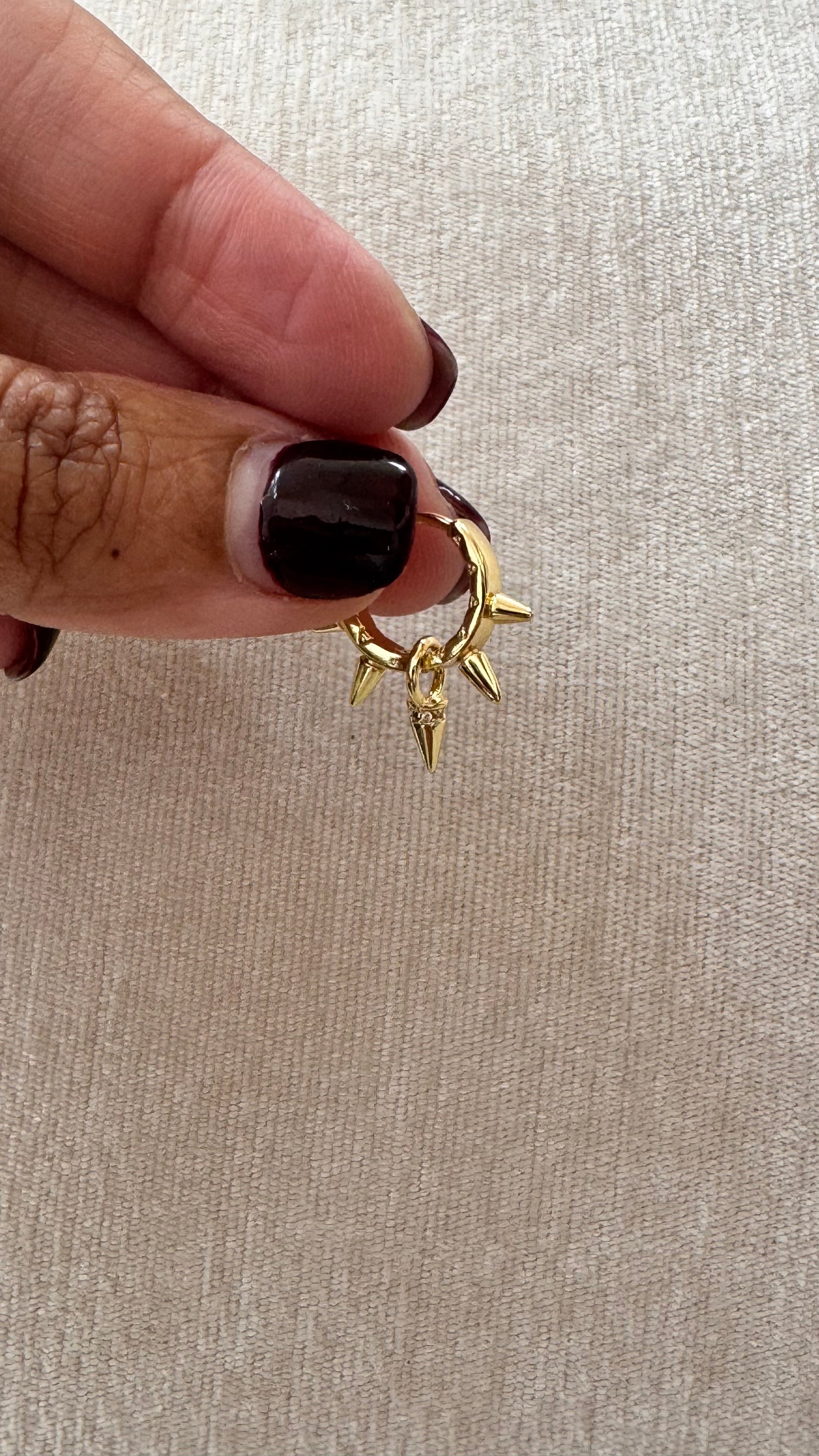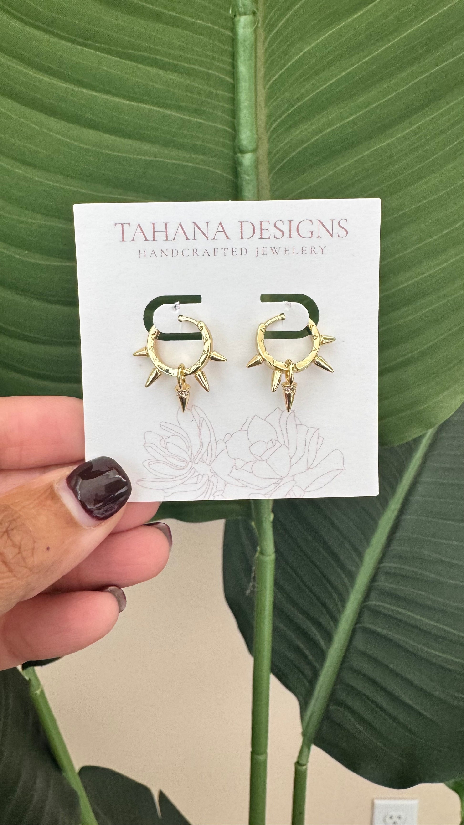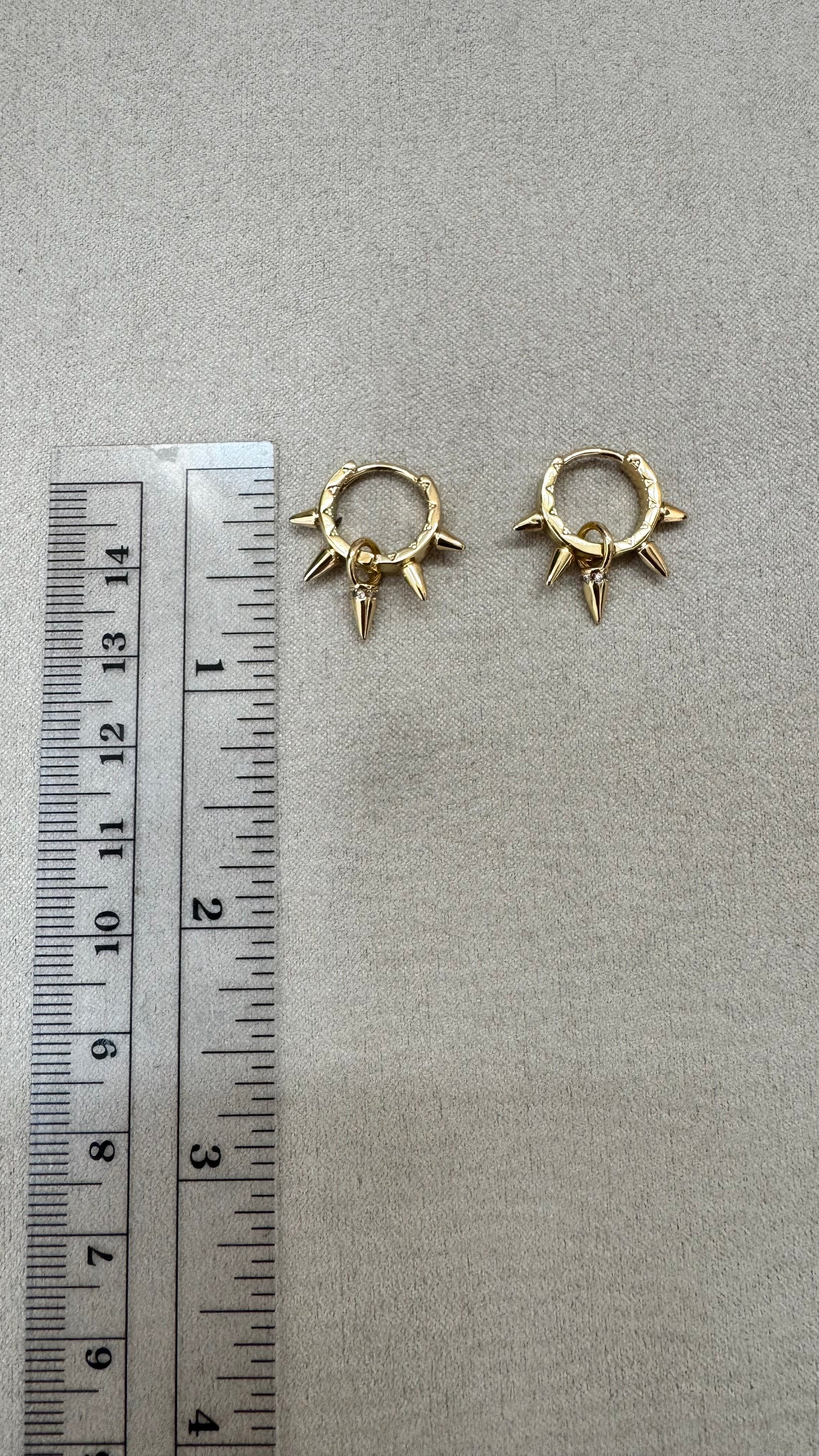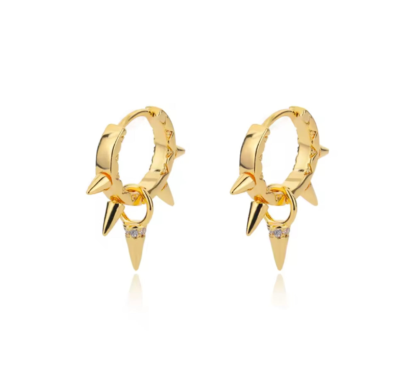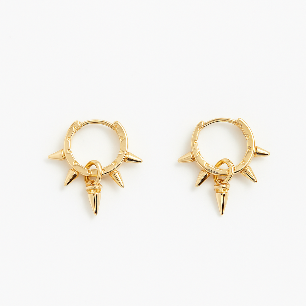 Crafted from high-quality stainless steel with a polished gold finish, these hoops bring just the right mix of edgy and classy. Each earring features sleek spike accents and a center spike adorned with sparkling pavé diamonds for a subtle hint of shine.