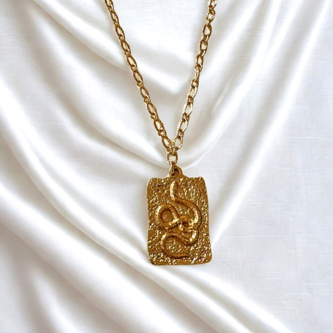 Make a bold yet meaningful statement with our Snake Gold Pendant Necklace, crafted with care and intention. Featuring a striking snake pendant on a delicate 18K gold-plated oval link chain, this piece blends modern elegance with deep-rooted symbolism. The 18-inch chain includes a 2-inch extender for adjustable length and versatile styling.