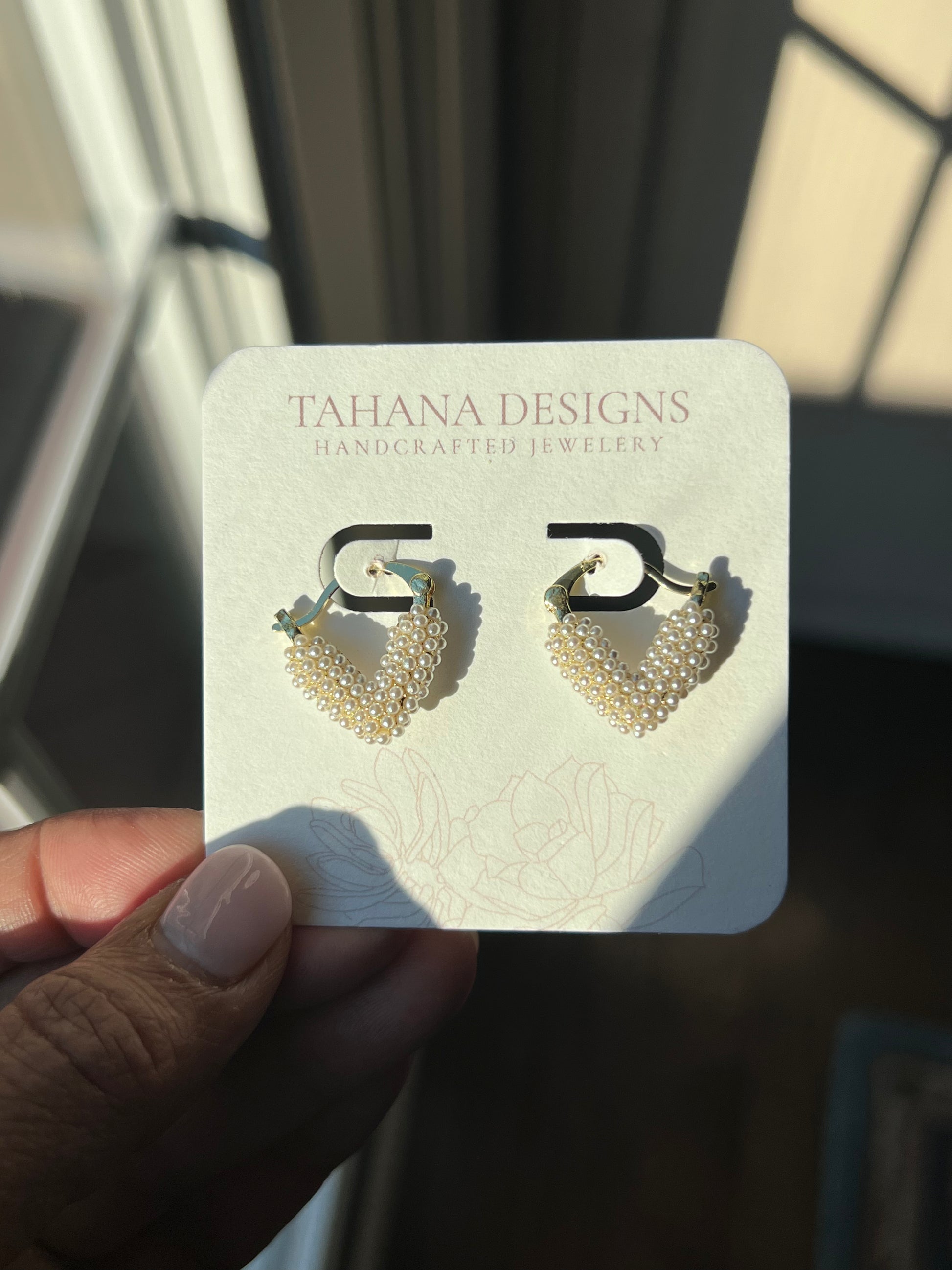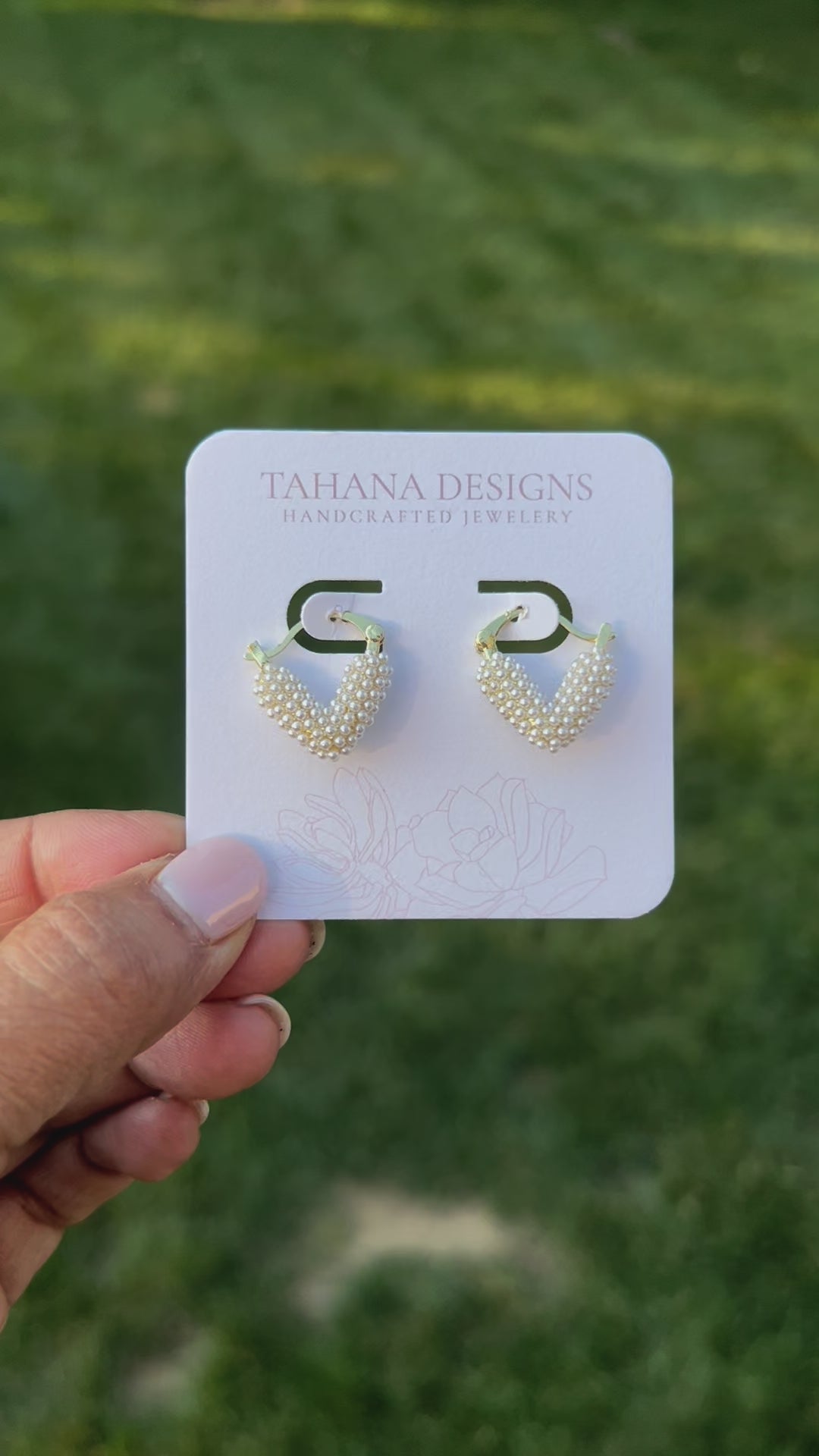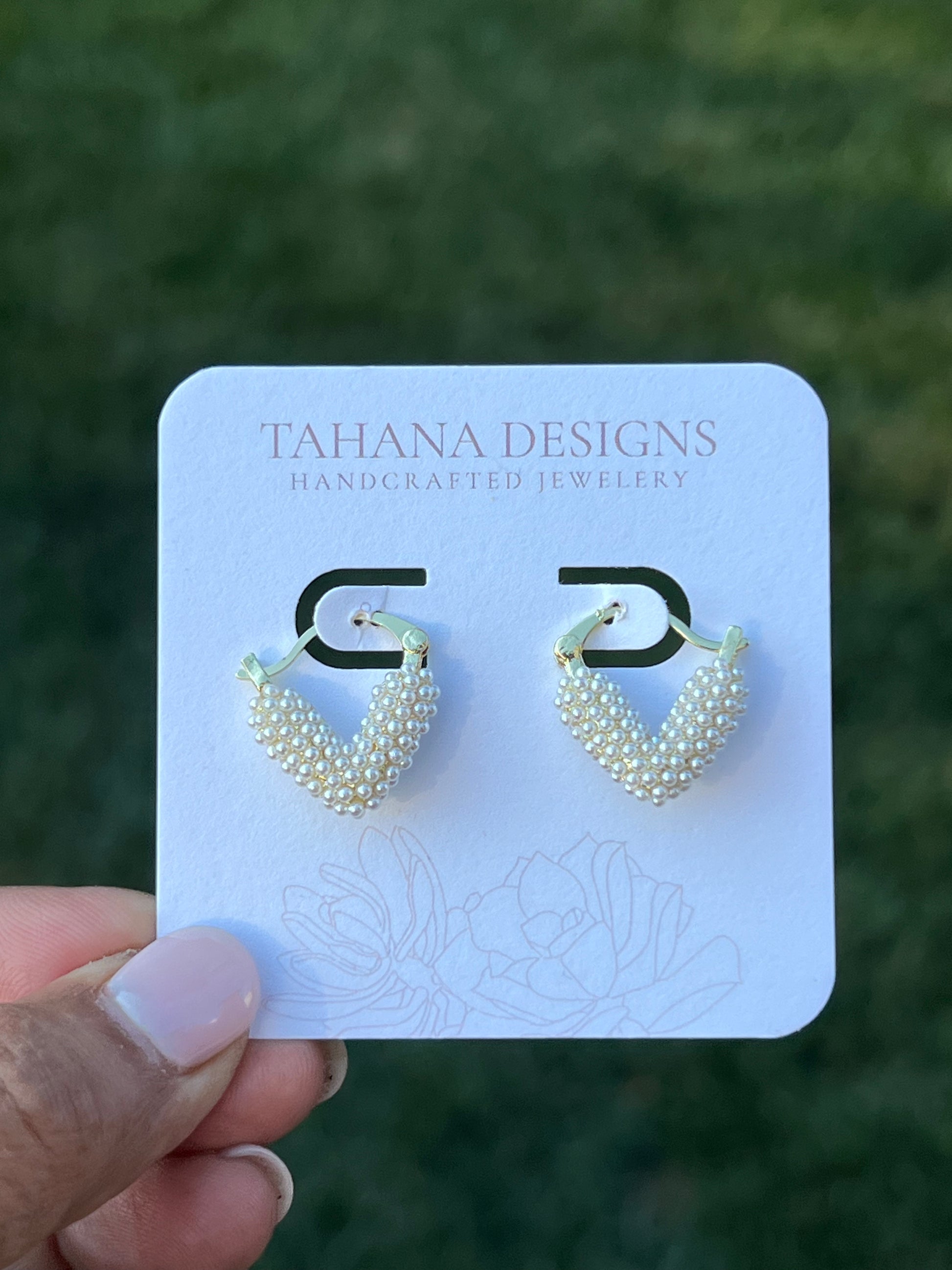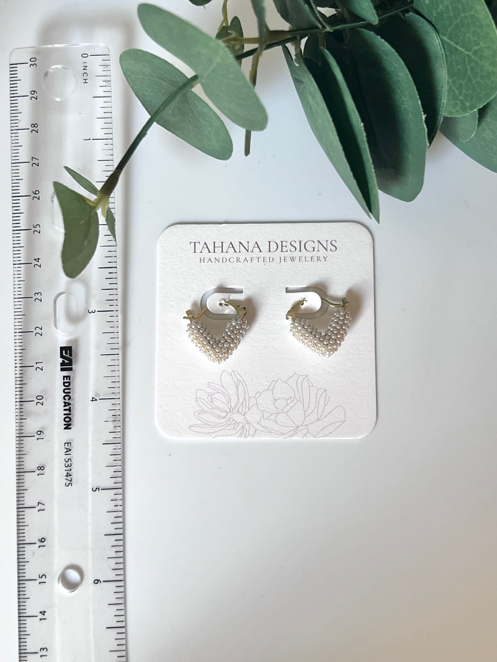 Indulge in the luxury of these Pearl Heart Hoops. With their classy pearl embellishments, these hoops add a touch of elegance to any outfit. Let these hoops be a reflection of your sophisticated and exclusive taste.