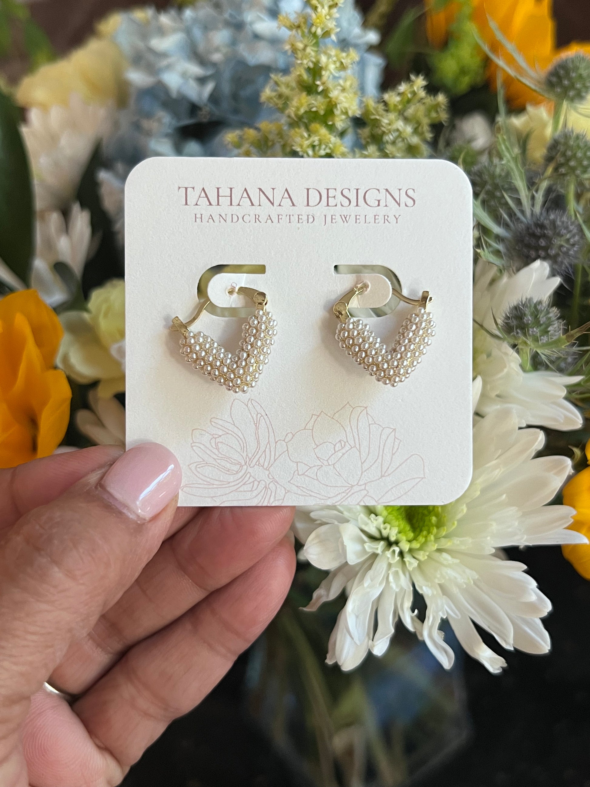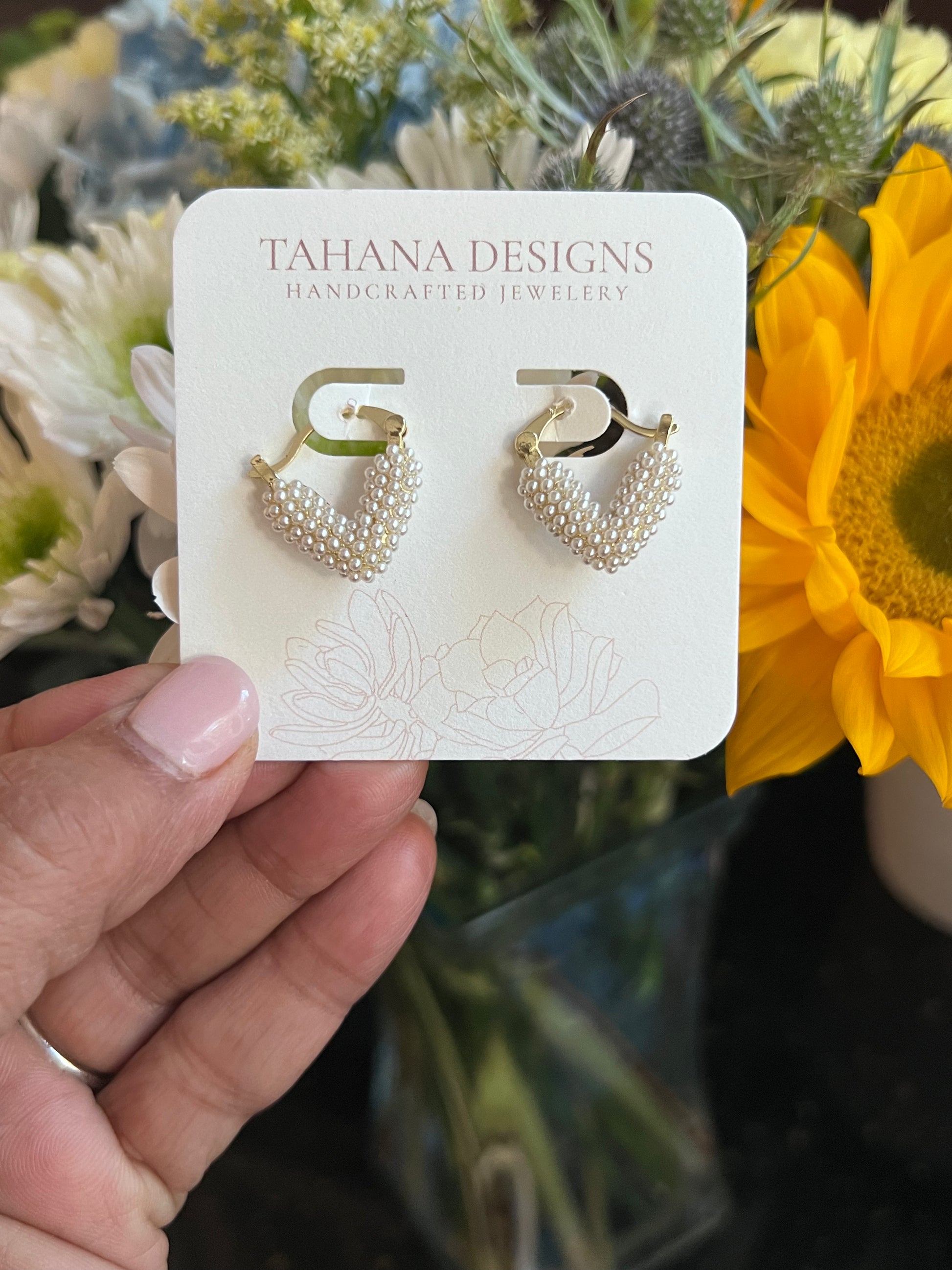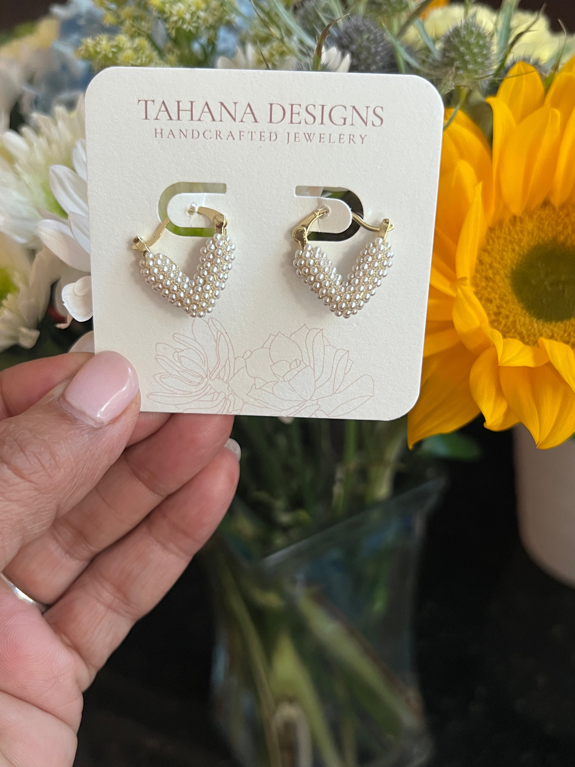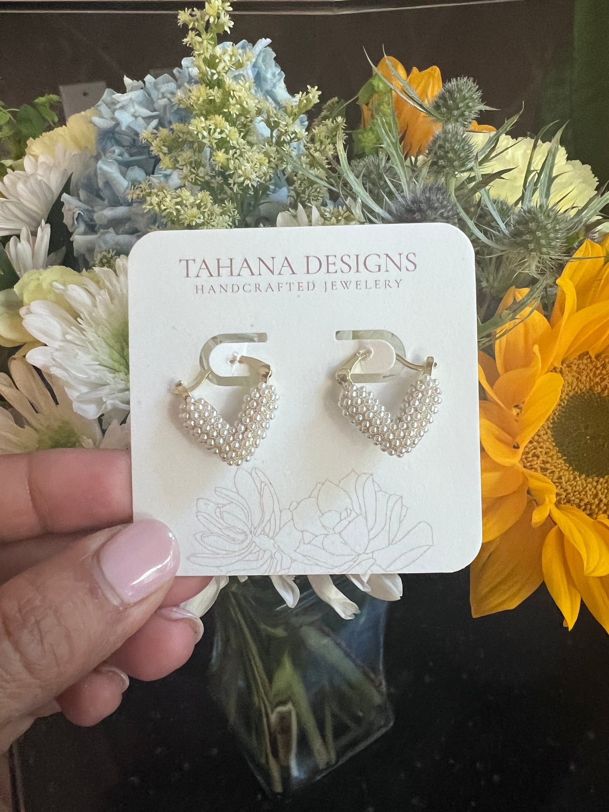 Indulge in the luxury of these Pearl Heart Hoops. With their classy pearl embellishments, these hoops add a touch of elegance to any outfit. Let these hoops be a reflection of your sophisticated and exclusive taste.
