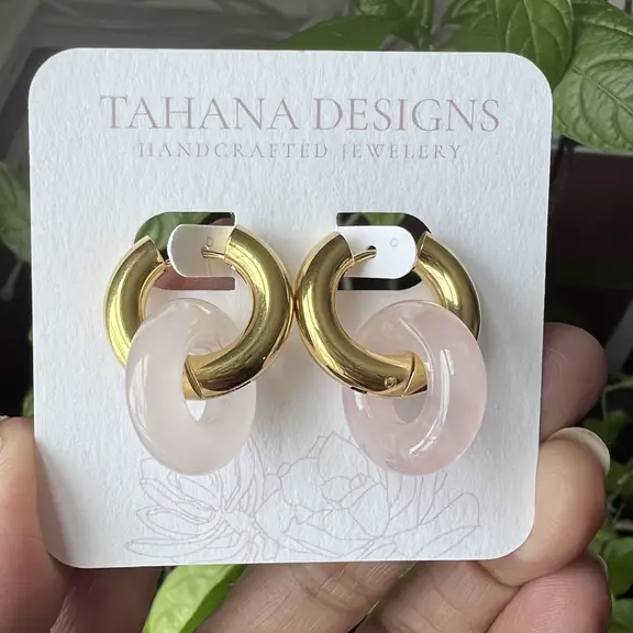 Easily switch up your look with these versatile Pink Quartz Gemstone Hoop Earrings. Wear them with the pink hoops for a pop of color, or remove them and rock the gold hoops on their own!