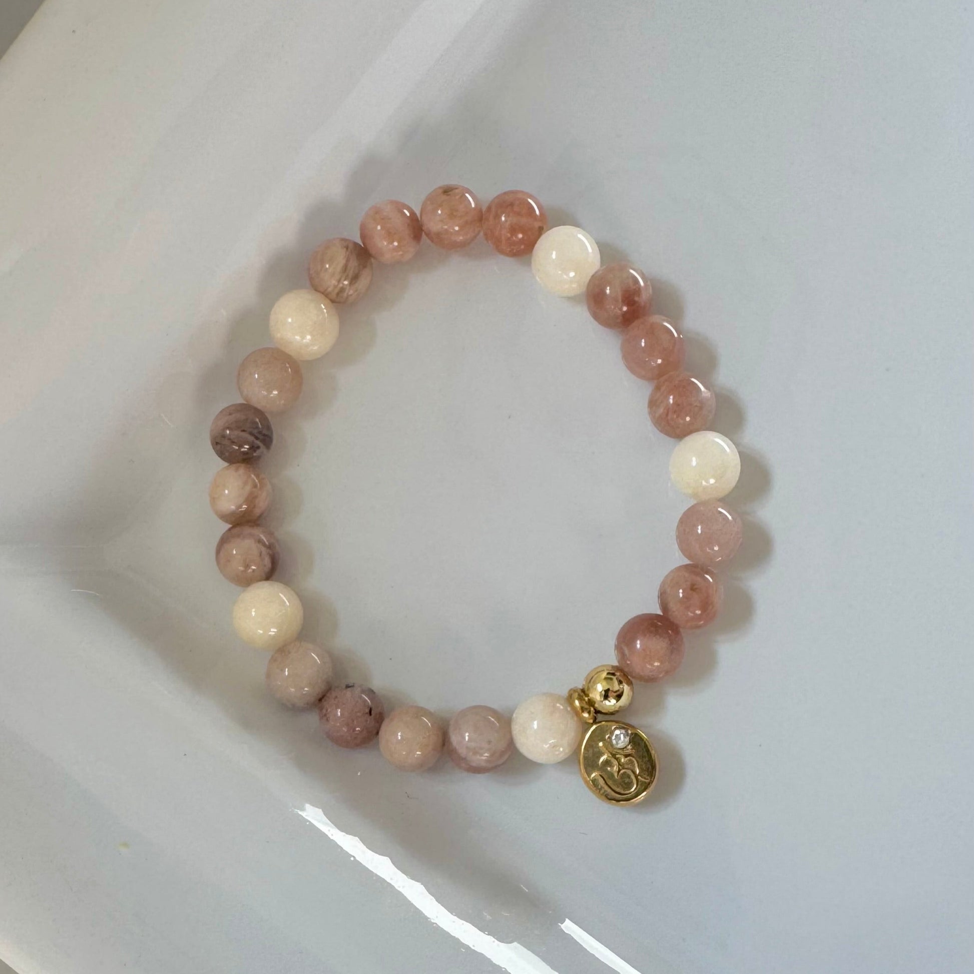 Bring balance and intention into your everyday with our Radiance Om Bracelet, a beautiful blend of plated quartz and Sunstone beads, finished with a stainless steel, non-tarnish Om pendant.