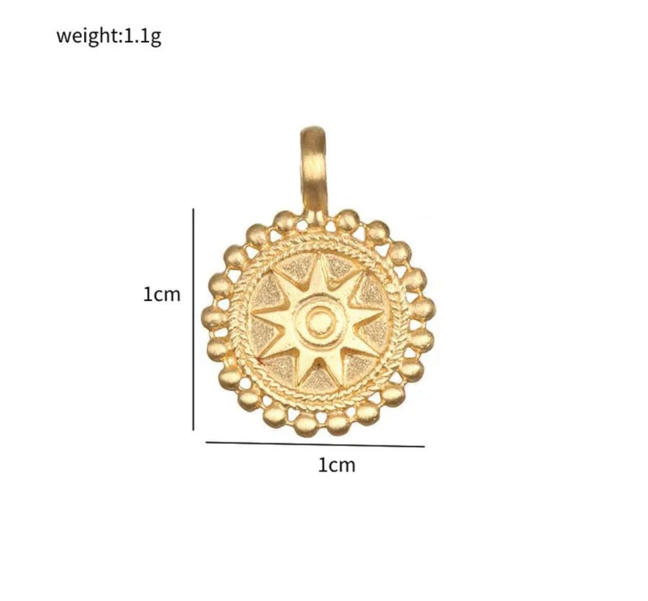 The sun medallion symbolizes light, energy, and new beginnings. Just as the sun radiates warmth and life, this charm serves as a reminder of your inner strength, joy, and the power to rise each day with renewed energy.